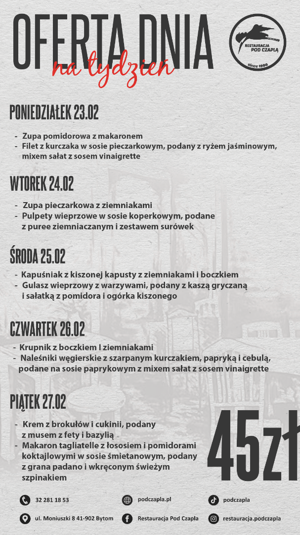 Zapytaj kelnera o ofertę dnia!