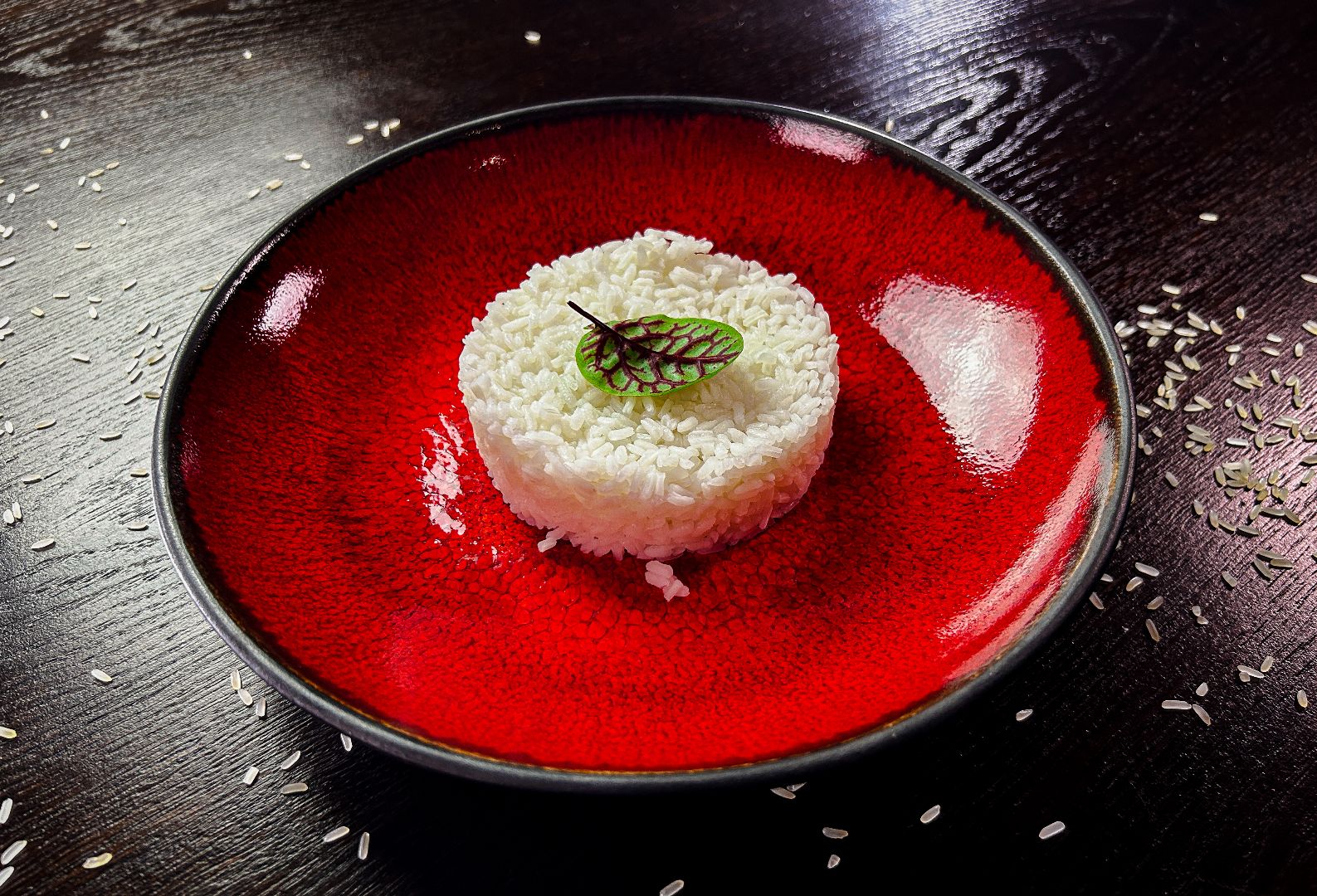 gorący rondel z małżami św. Jakuba i krewetkami w sosie ze śmietaną, papryką, cebulą, sosem ostrygowym i słodkim chilli, podany z ryżem jaśminowym i mixem sałat z sosem Vinegrette