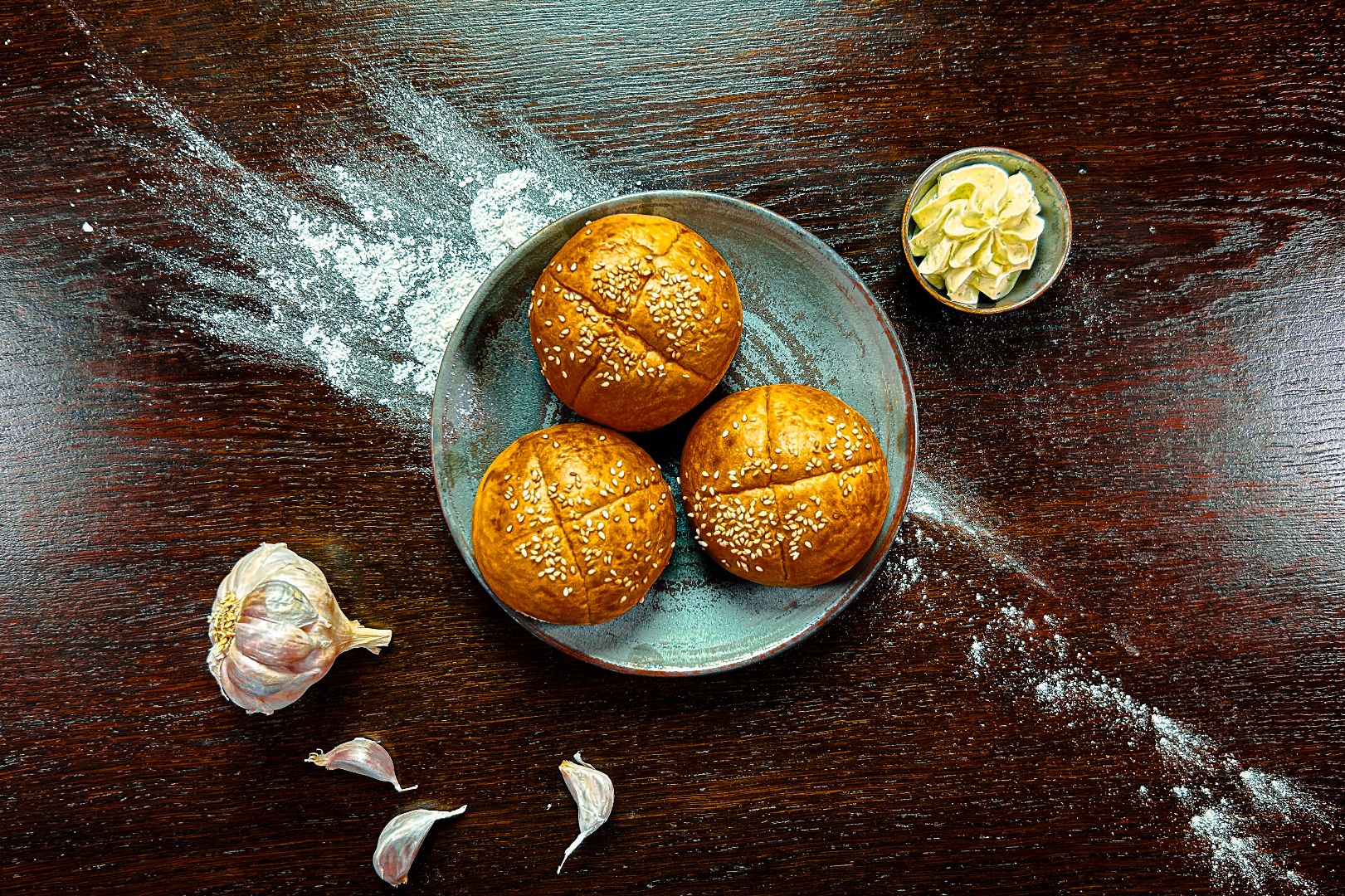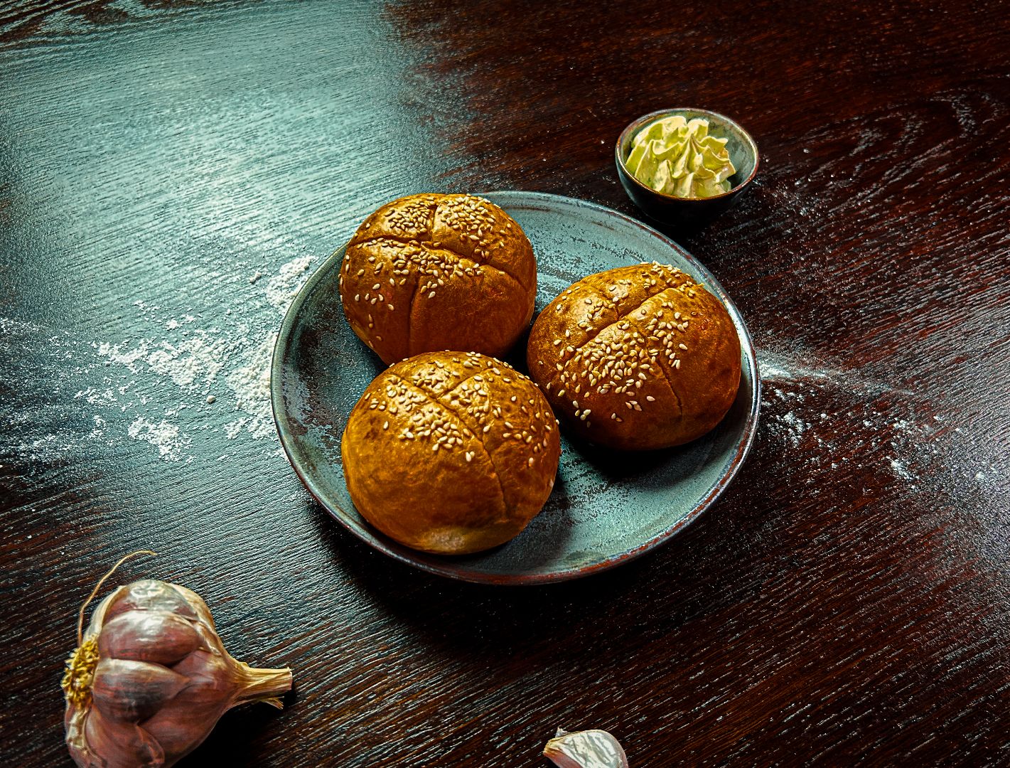 z parmezanem i kaparami, serwowane z bułeczkami i masełkiem czosnkowym