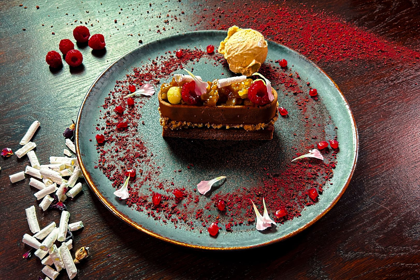 semifreddo czekoladowe na ciastku daktylowym z lodami waniliowymi